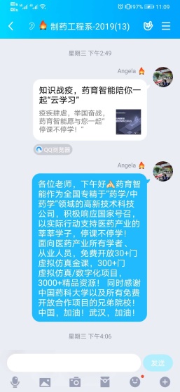 此外,所有支部成员积极响应国家“少出门,不出门”的号召,减少出门次数,在家通过网络指导学生毕业设计(论文)相关工作,积极响应教育部“利用网络平台,停课不停学”的倡导方针,开展线上教学学习和准备工作,并积极利用学术网站,不断提高自身的学术水平。(制药工程系教工党支部)