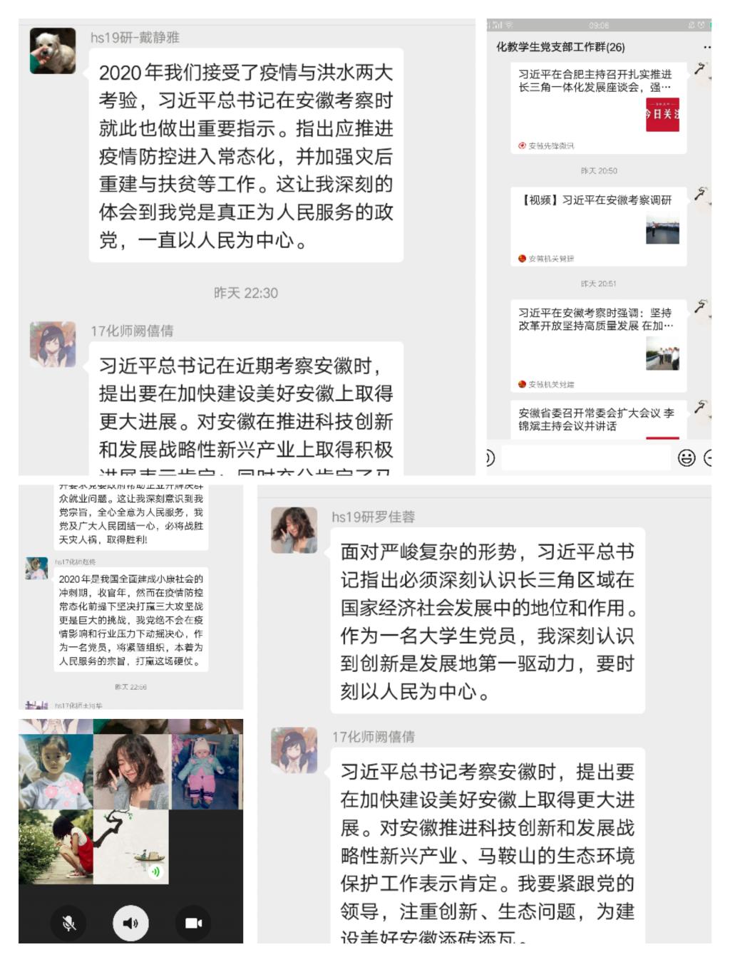 会上还观看了习近平在安徽考察调研的视频资料,王庆林从自然与人文角度介绍了考察路线的地理历史、形成及社会经济发展。(化学教育系学生党支部)