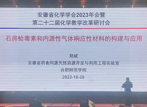 2023年10月27-29日,由安徽省化学会主办、巢湖学院化学与材料工程学院承办的“安徽省化学学会2023年会暨第二十二届化学教学改革研讨会”在巢湖召开。大会围绕高等学校化学、化工、材料及相关本科专业一流专业和一流课程的建设、实验室安全、学科发展与学位点建设、应用型人才培养质量以及课程思政等主题进行了交流和研讨,来自全省高校化学、化工相关教师及企业代表200余人出席会议,我校今年会jinnianhuicom郑斌教授率队参加本次会议,并应邀在大会青年论坛上做学术交流。