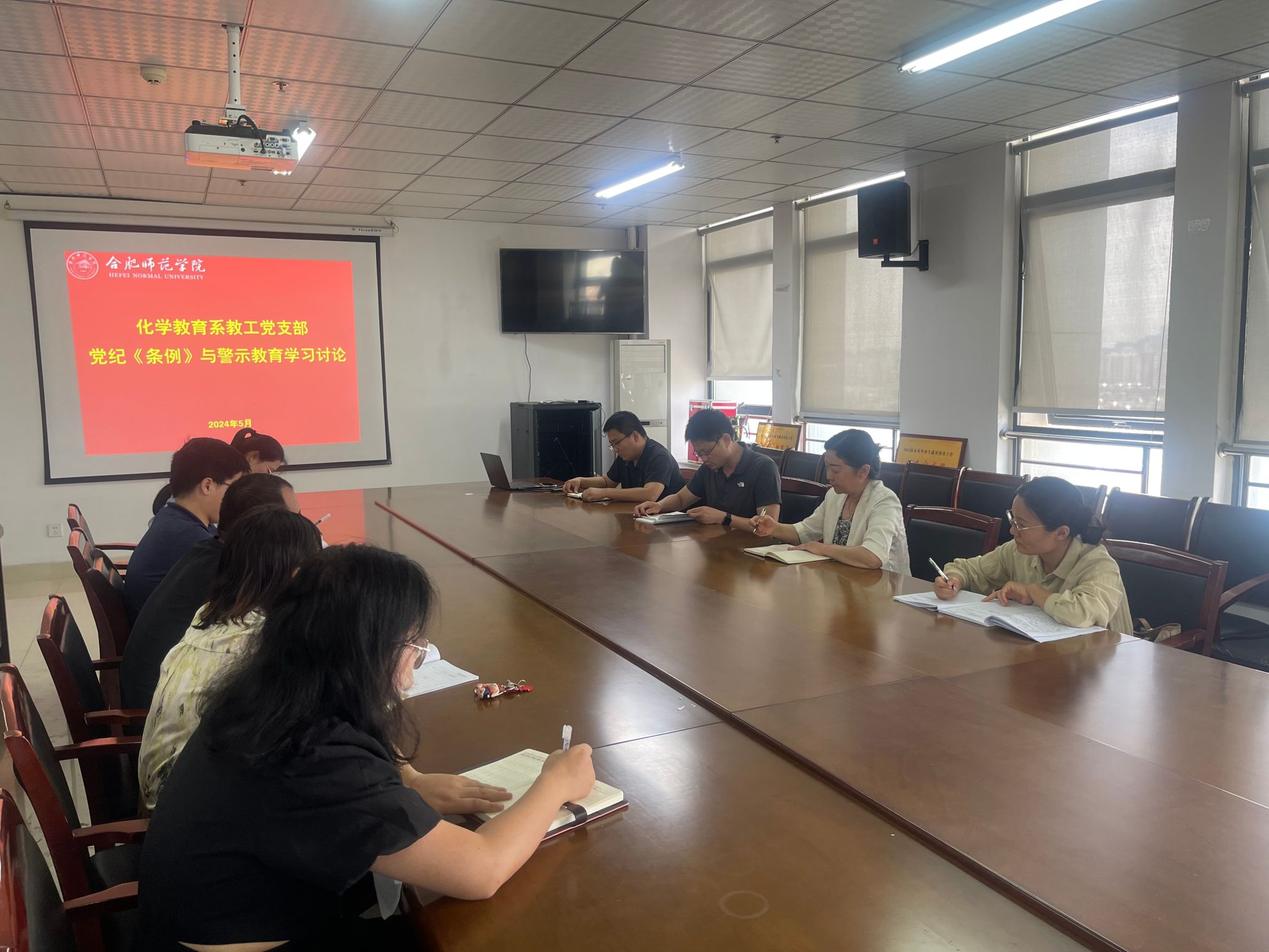 自党纪学习教育开展以来,支部及时召开支委会,安排、部署党纪学习教育工作。支委带头学习并开展讨论。在全体党员大会上,支部书记组织全体党员原原本本学习《中国共产党纪律处分条例》,并围绕《条例》学习,结合教学科研工作开展讨论,真正做到紧密联系实际学。在党纪学习教育辅导报告会上,全体党员认真聆听了学校“思责守正”青年教师理论宣讲团成员王潇老师带来的“从‘三大决议’看党的自我革命”的宣讲报告,深受启发。在理论学习的基础上,5月29日,支部组织全体党员观看了警示教育片。通过本次警示教育,大家深刻认识到党风廉政建设的重要性和廉洁自律的必要性,纷纷表示要以党纪学习教育为契机,不断增强自身的党性修养和纪律意识,始终做到坚定信仰,拒腐防变,鼓足干劲、奋勇争先,以实际行动为学院高质量发展做出自己的贡献。