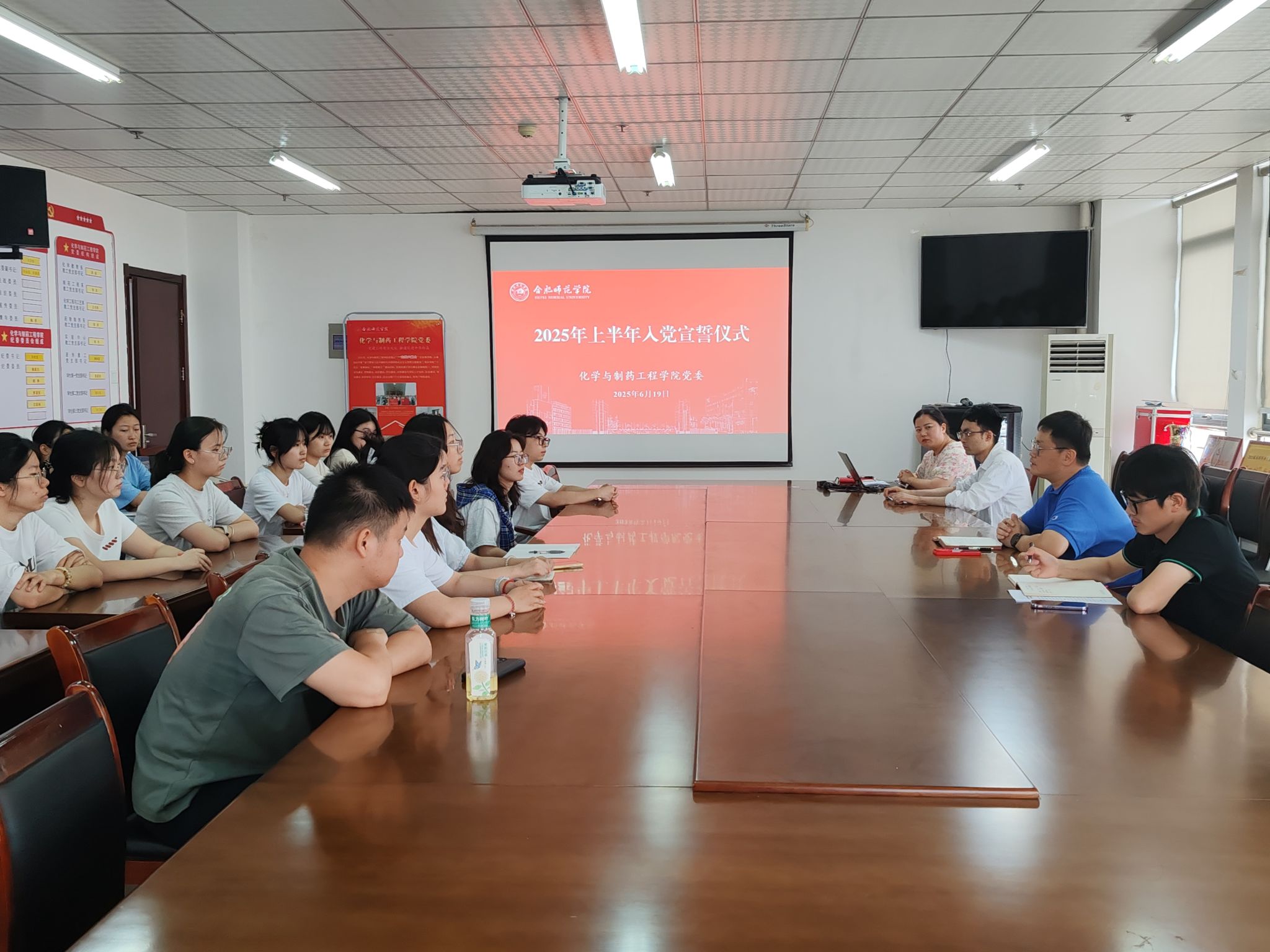 6月19日中午,今年会jinnianhuicom党委在行知楼1402会议室召开了2025年上半年新接收预备党员入党宣誓仪式。学院党委书记刁文彬、各学生支部书记、正式党员代表以及全体预备党员参加本次仪式。