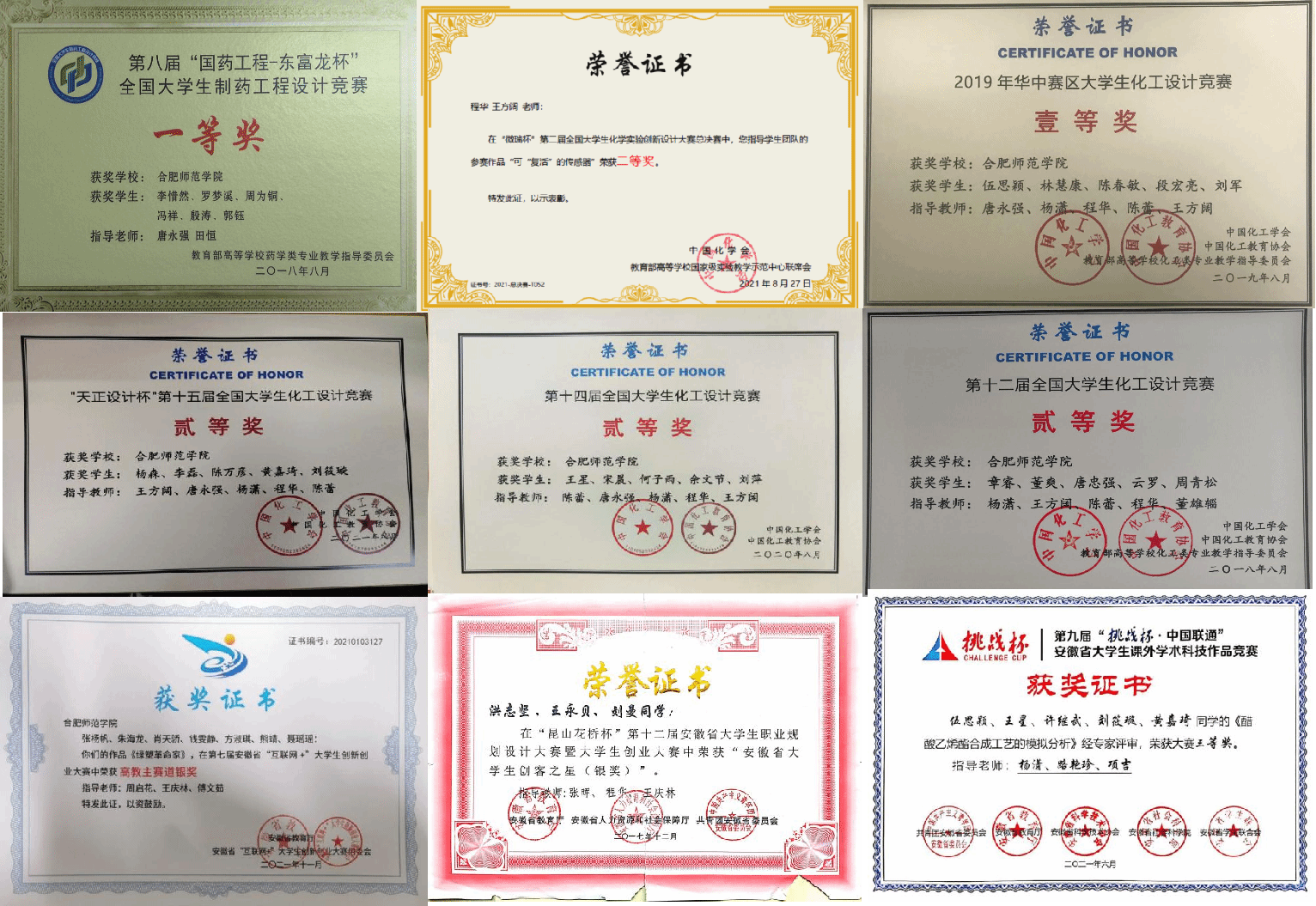 (4)人才培养日益重视。化学工程与工艺专业人才培养质量较高、就业创业率较高,社会认可满意度较好。就业去向主要是攻读硕士和进入企业事业单位等。近三年,本专业在校生获得国家奖学金1人,国家励志奖学金14人,校级优秀学生奖学金15人、校外奖学金2人。此外,在全国化工设计大赛、安徽省化学竞赛等省级以上专业学科竞赛中本专业学生共获得了36项奖项,其中获得15项国家级大赛一、二、三等奖和21项省级大赛一、二、三等奖等。近三年本专业毕业生的初次就业率都在90%以上,考取研究生率平均达到25.9%。学生已申请获批立项国家级、省级大学生创新创业项目40余项,研究成果先后发表论文18篇,申报专利15项。