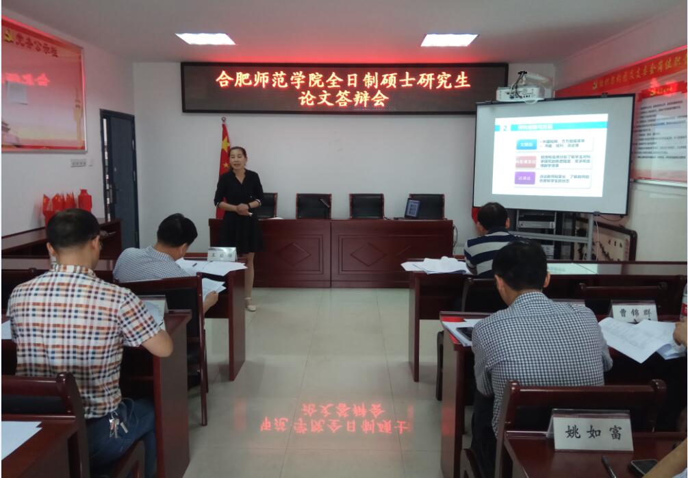 5月18日,副校长姚本先教授出席化学与化学工程学院2018届学科教学(化学)硕士专业学位论文答辩会。答辩会在联合培养工作站合肥市第五中学举行,答辩委员会由华中师范大学王后雄教授、王世存副教授,安徽教育科学研究院夏建华主任,合肥五中周祖保校长、科大附中曹锦群特级教师,工大附中徐伟特级教师及化学与化学工程学院董华泽教授等七位专家组成,答辩委员会主席由享受国务院政府特殊津贴专家、全国教育改革“十佳”教师、华中师范大学博士生导师王后雄教授担任。研究生导师、秘书参加答辩会,姚如富教授主持答辩会。