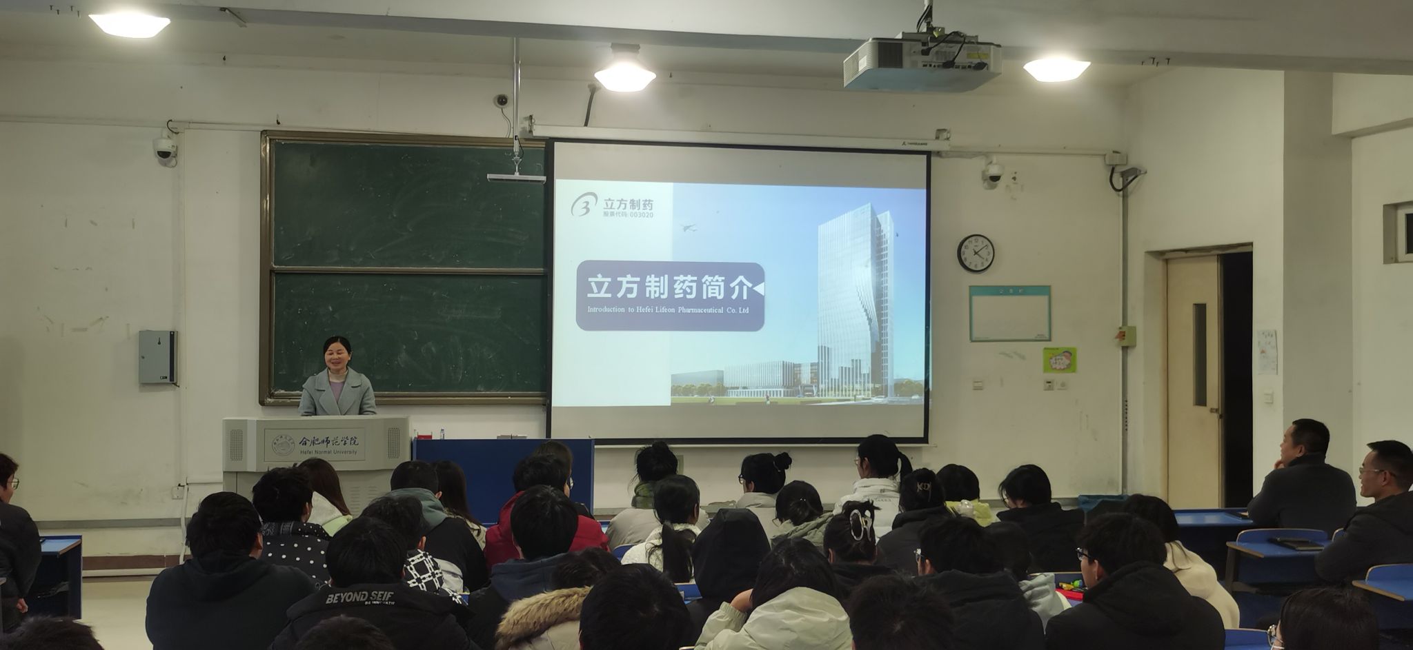 会上,朱金苗院长代表学院对周化院长一行到来表示热烈欢迎,并详细介绍了今年会jinnianhuicom的毕业生情况、专业设置、学生培养、师资力量、科研成果、就业实习基地建设等。希望双方加强合作,通过产业学院建设创新人才培养模式,未来双方可以在实践教学、学生就业实习、人才培养等领域展开广泛而深入的合作,实现双方合作双赢。合肥立方制药股份有限公司制药研究院蒋敏燕研究员向同学们介绍了立方制药公司的基本情况,发展历程以及产业结构,重点介绍了公司围绕渗透泵缓控释核心技术的研发及产业化工艺突破取得的优异成绩。合肥立方制药股份有限公司制药研究院副院长张良向同学们介绍了立方制药公司的科研实力,研发管线,产品内容,市场规模以及受益大众分布等,进一步分析产业学院班的优势所在,积极鼓励同学们进入产业学院班级学习,未来成为制药工业的卓越工程师,服务于人类健康事业。