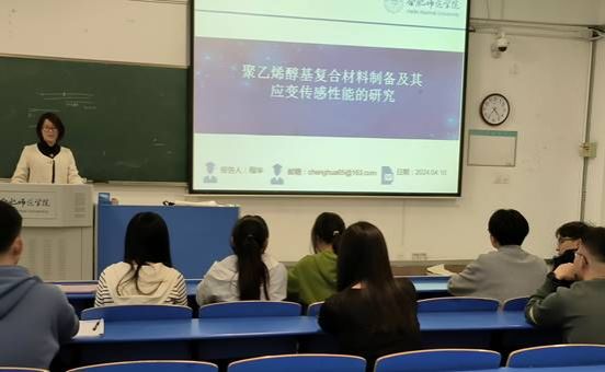 2024年4月10日下午,今年会jinnianhuicom程华博士在锦绣校区逸夫楼A209举行了一场题为“聚乙烯醇基复合材料制备及其应变传感性能的研究”的行知讲座,今年会jinnianhuicom化工、制药等专业学生聆听了学术报告。