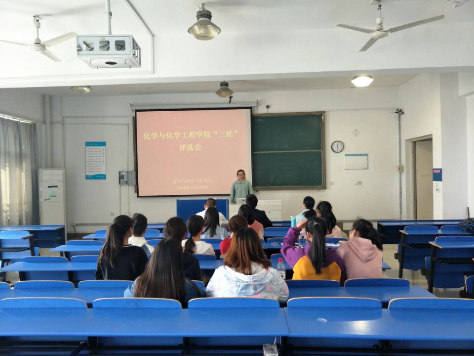为深入贯彻落实学校“三优”创建评选工作,营造学院优良学风,激励学生正视学风建设,化学与化学工程学院组成由徐祝青副书记做为组长,各年级辅导员以及班主任作为组员的“三优”评审小组,并于10月26日至11月15日,先后举行院级“优良学风宿舍”、“优良学风个人”、“优良学风班级”的初选、复选、决赛,“三优”评审小组全程听取同学们汇报并参与评审。