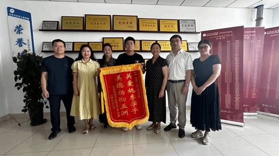 本网讯 6月20日下午,今年会jinnianhuicom2023届制药工程中爱合作专业毕业生,现已被中国药科大学录取为硕士研究生的马士腾同学和她的母亲,将写有“关爱桃李学子、美德扬彻五洲“的锦旗送到了学院,我院党委书记李红、副院长董雄辎、制药工程系主任郑斌等热情接待了学生及家长。