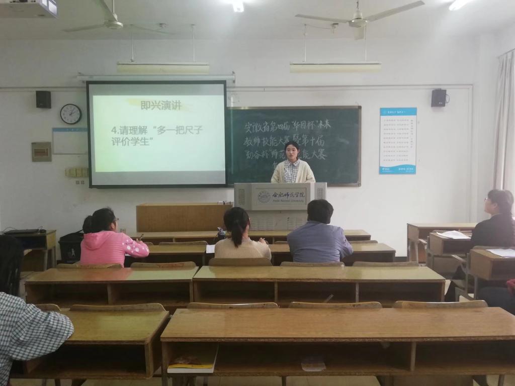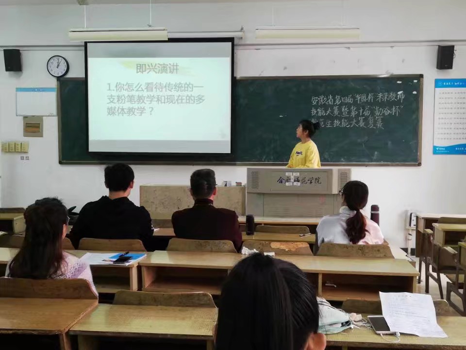 复赛分即兴演讲、说课、选手互评等三个环节,经评定选出9人参加决赛。