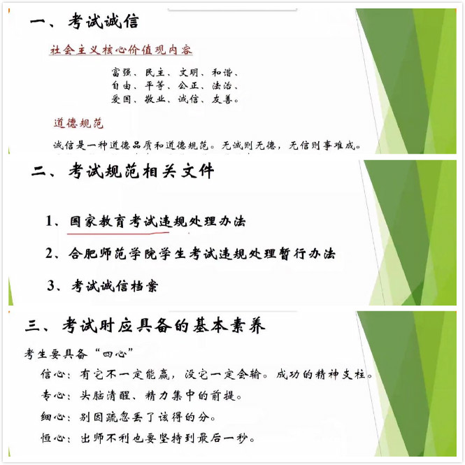 三是开展线上诚信主题班会。2019级各班围绕诚信期末备考展开。着眼于临近的期末考试,分析了同学们本学期线上学习中存在的问题,督促大家抓紧时间备考,强调诚信考试的重要内涵及意义。同时,指出诚信是做人之本,诚信的行为铸就诚信的人格,是大学生必不可少的素质,线上考试更考验大家的自觉性和诚信度。