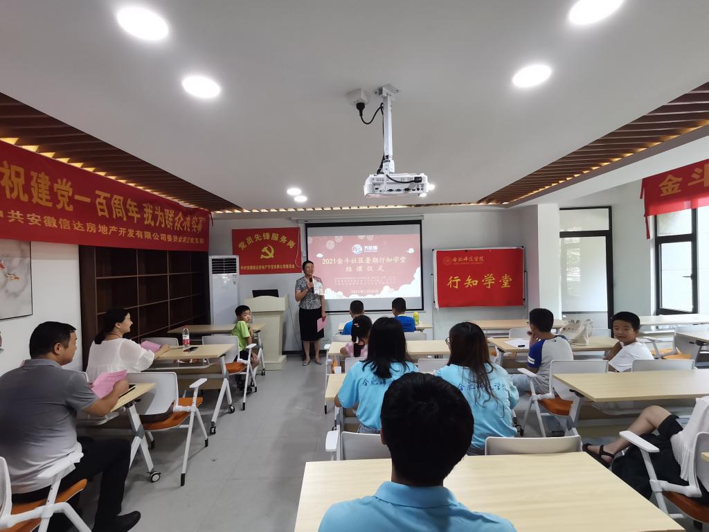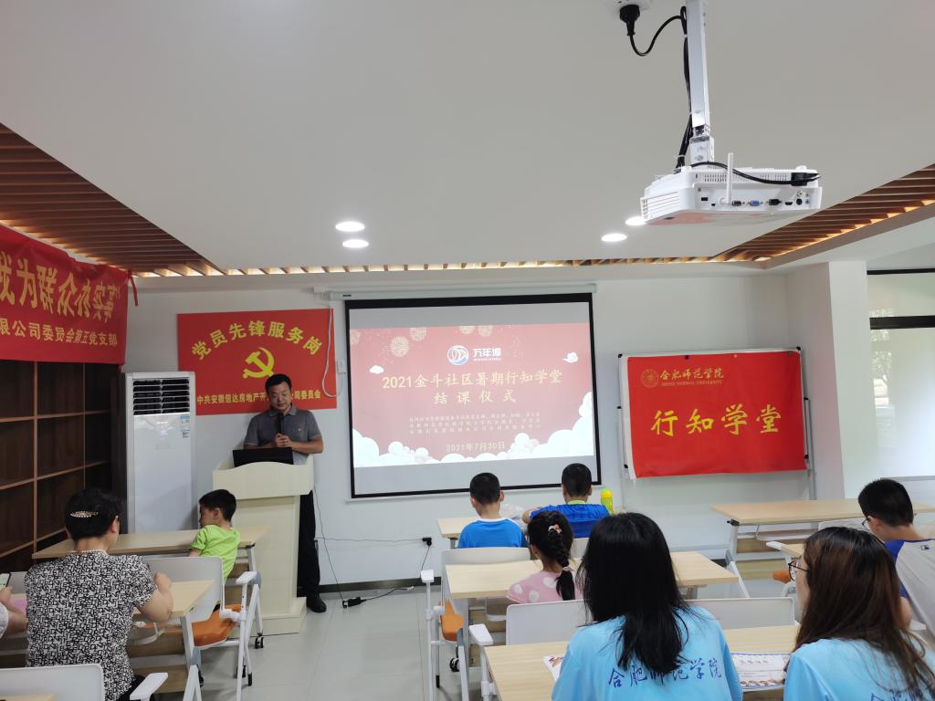 王相全代表社区,向大家介绍了社区发展的基本情况,特别通报了社区文化建设、志愿服务等方面的特色工作;表示社区与学校初次合作建设行知学堂,学院党政重视、学堂组织有序、小先生们专业、家长们认可、小学员赞许,达到了建设的预期效果。