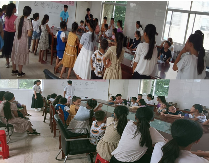 本网讯 近期,一场别开生动的开班仪式在安徽省蚌埠市高新区禹庙村居委会二楼举行,来自化学化工学院等三个学院的8位小先生、31名小学员齐聚一堂,共同迎接弘德行学堂的到来。