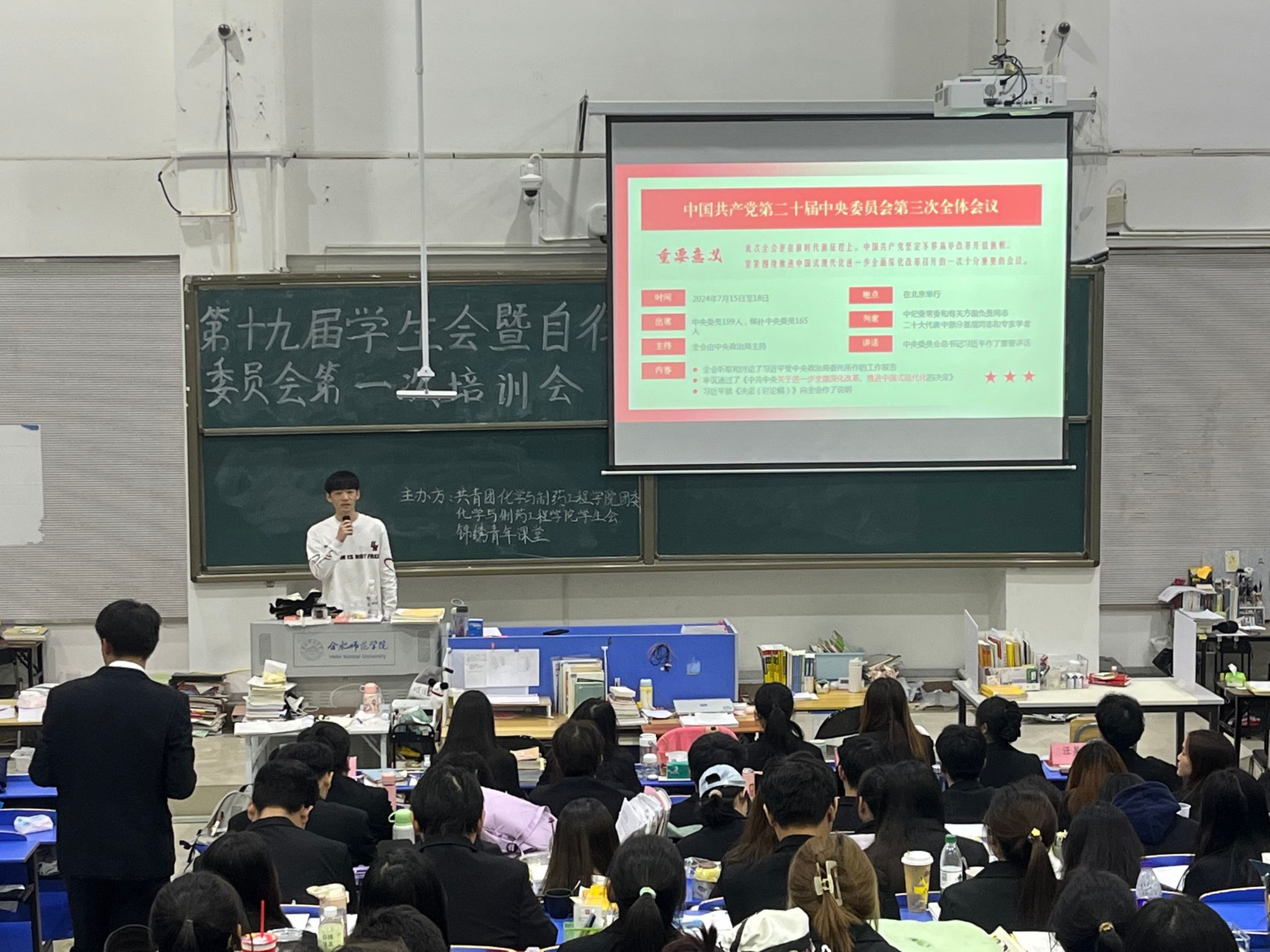10月23日,学习贯彻党的二十届三中全会精神青年学生宣讲团走进今年会jinnianhuicom“锦绣青年课堂”进行宣讲。共青团今年会jinnianhuicom委员会、今年会jinnianhuicom学生会、各团支部学生骨干、优秀共青团干部、优秀共青团员、青年马克思主义者培养工程培训班学员、青春学习营学员、力行志愿服务团等200余人参会。