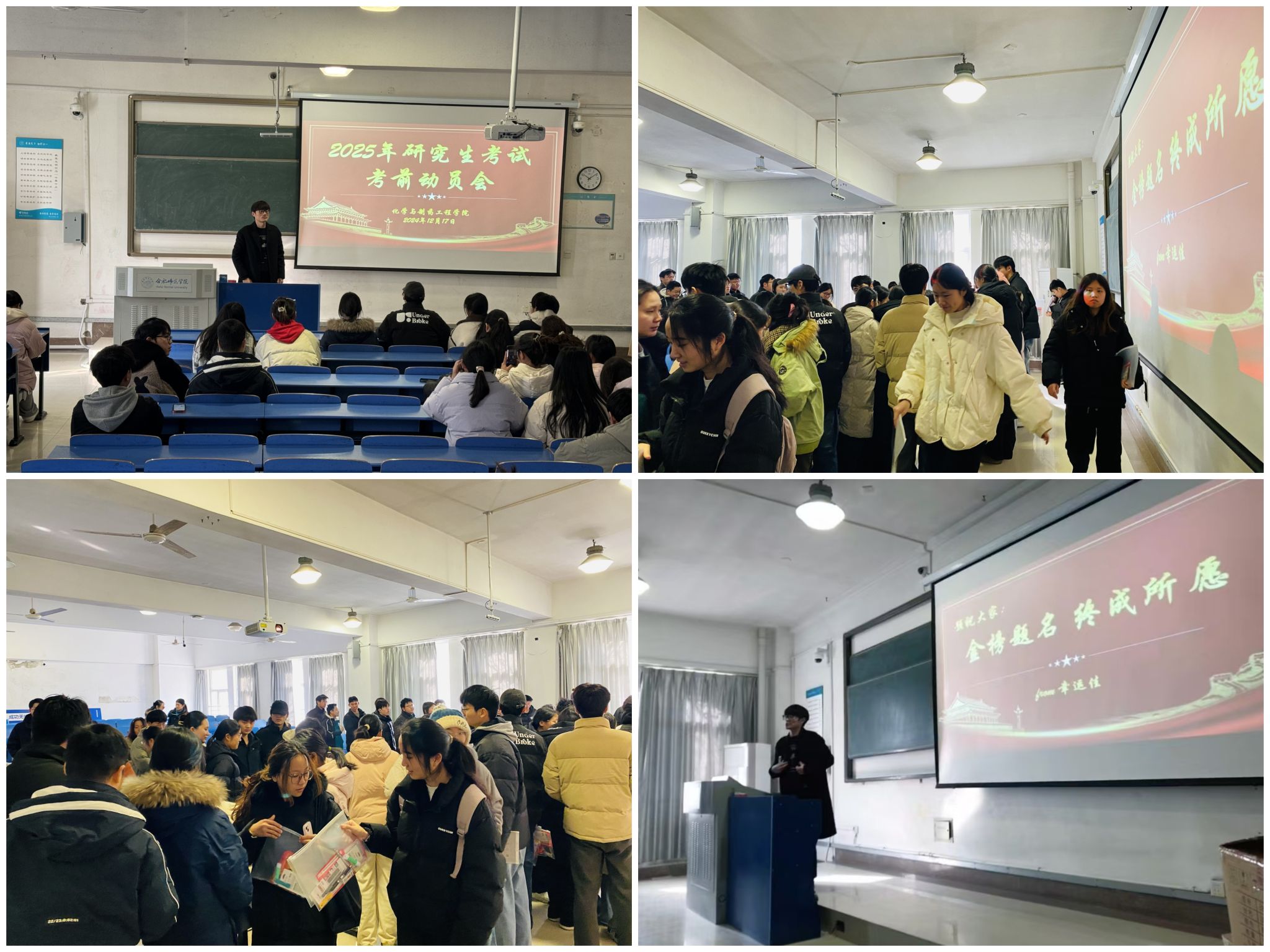 为了帮助考研学生保持良好的心理状态,积极自信参加考试。今年会jinnianhuicom于12月17日上午在逸夫楼A101教室举办2025年研究生考试考前动员会暨考研加油送温暖活动。本次活动由2021级辅导员潘云佳主持,今年会jinnianhuicom200多名考研学生积极参加。