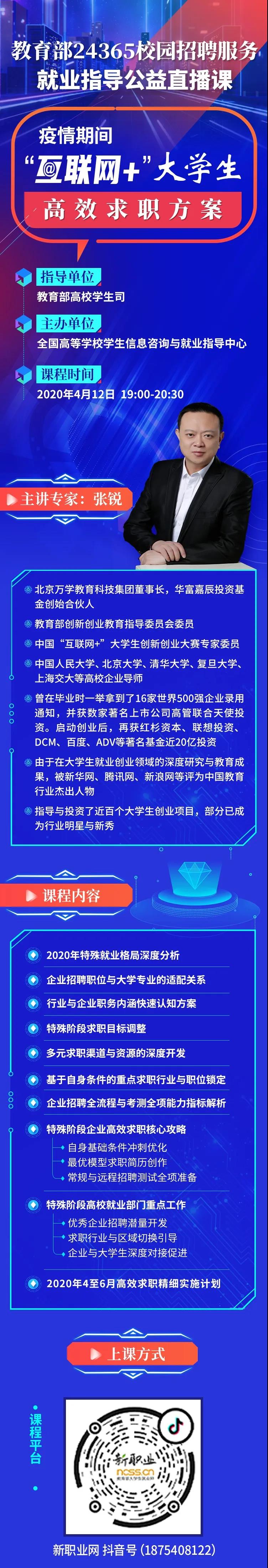 “应对疫情 就业服务”系列之十八:教育部24365校园招聘服务就业指导公益直播课——疫情期间“互联网+”大学生高效求职方案
