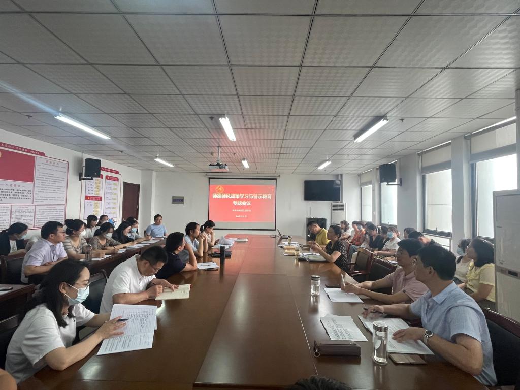 会议传达了学校党委教师工作部下发的《关于开展师德师风专题政策学习和警示教育的通知》精神,集中学习了教育部下发的《新时代高校教师职业行为十项准则》《关于高校教师师德失范行为处理的指导意见》等文件,并结合违反教师职业行为十项准则典型案例进行了详细解读。