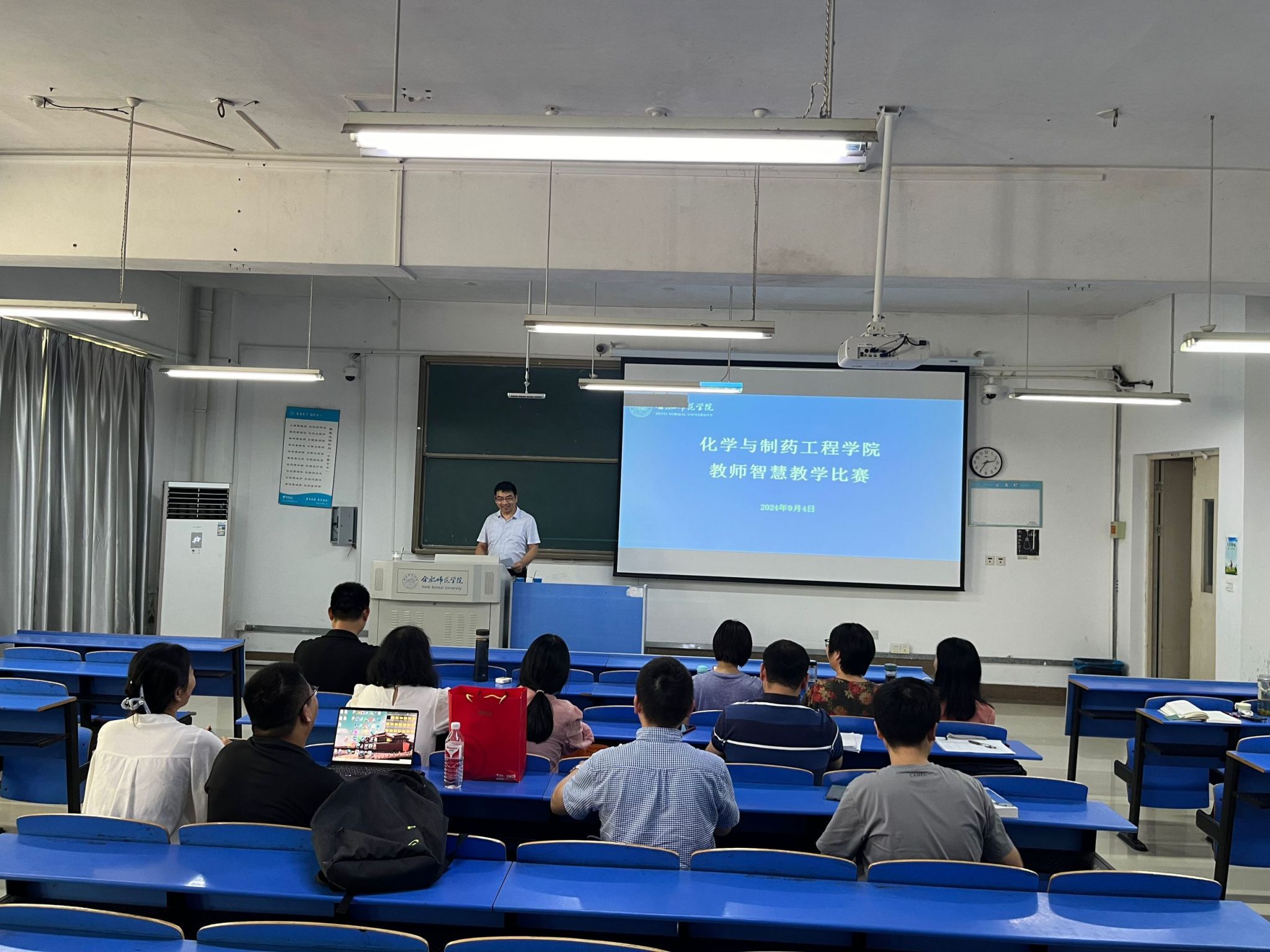 2024年9月4日,今年会jinnianhuicom在锦绣校区逸夫楼A107教室开展院内师范专业教师智慧教学比赛。副院长董雄辎教授出席比赛。本次比赛由化学教育系主任凌波主持,师范专业全体教师参赛并观摩。