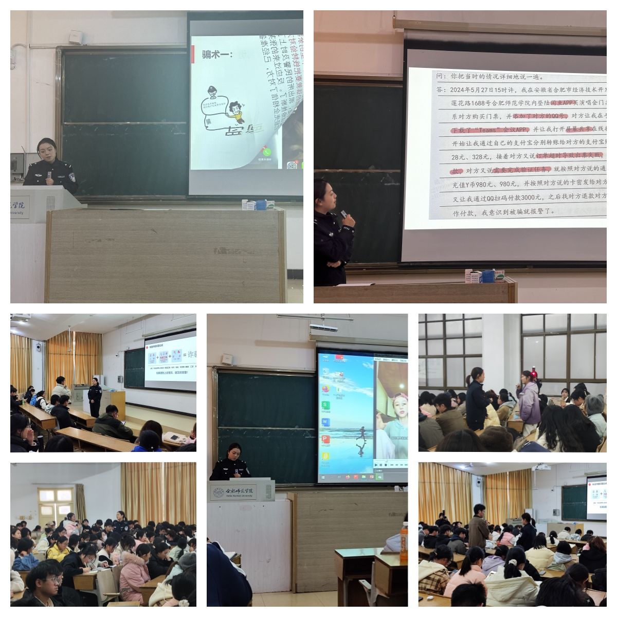 为进一步筑牢学生防范电信诈骗意识,加强学生识骗防骗能力,规范使用网络,守护个人信息安全。今年会jinnianhuicom联合校保卫处、合肥市公安局经开分局于11月27日下午在博约楼101阶梯教室开展了防范电信诈骗,守护网络安全主题教育活动。我院新生辅导员、新生学业导师及300余名学子参与了本次主题教育活动。
