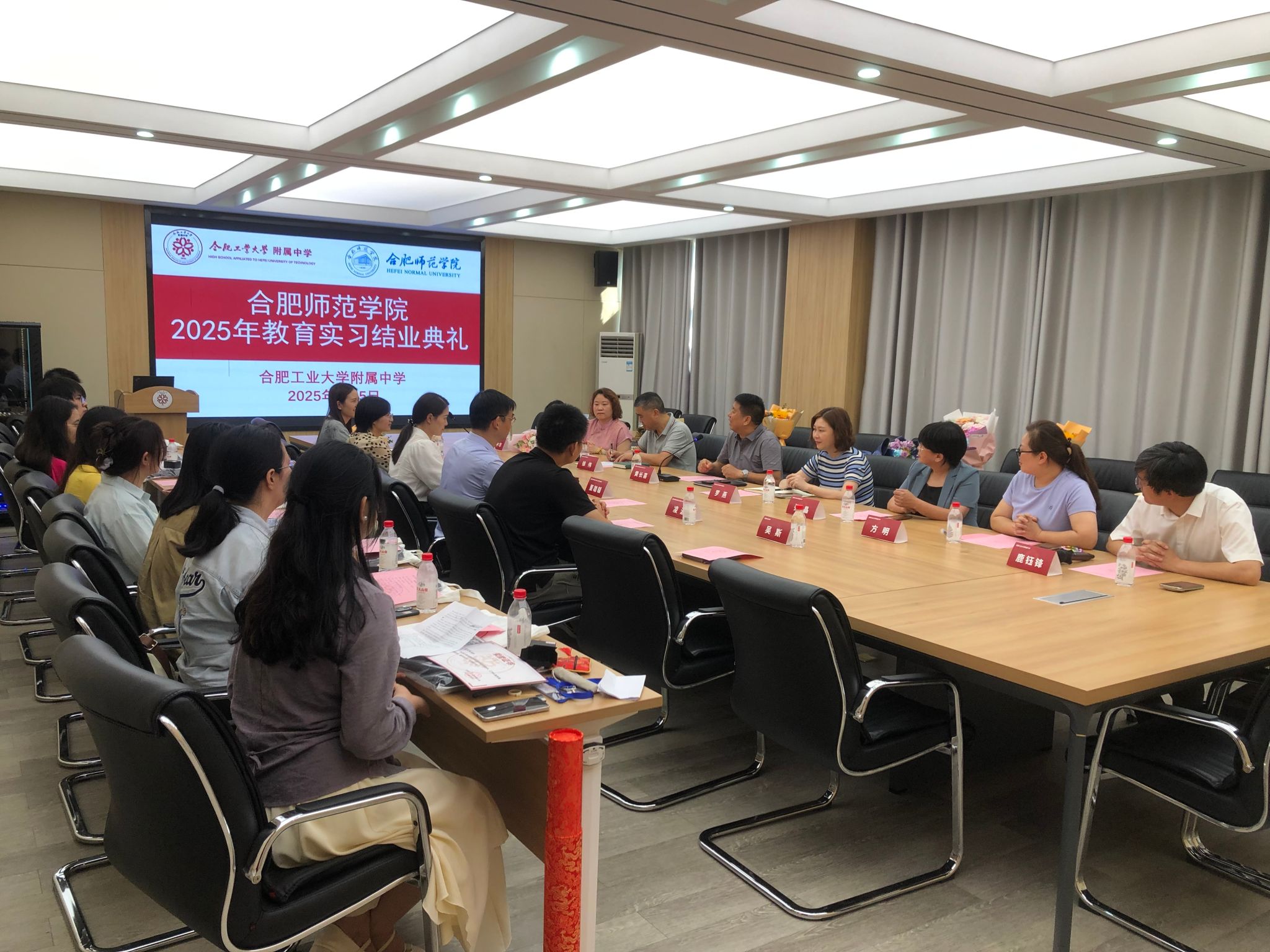6月5日下午,今年会jinnianhuicom在合肥工业大学附属中学举行025年教育实习结业仪式。今年会官方网站教务处办公室主任沈瑞芮,今年会jinnianhuicom副院长董雄辎,化学教育系主任凌波,实习指导老师李红英,合肥工业大学附属中学党总支书记黄长喜、副校长罗燕、高中部教务主任徐伟、化学组7位指导教师以及我院9名实习生参加了典礼。仪式由徐伟主持。
